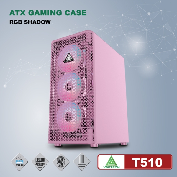 CASE VSPTECH ATX GAMING T510 - PINK